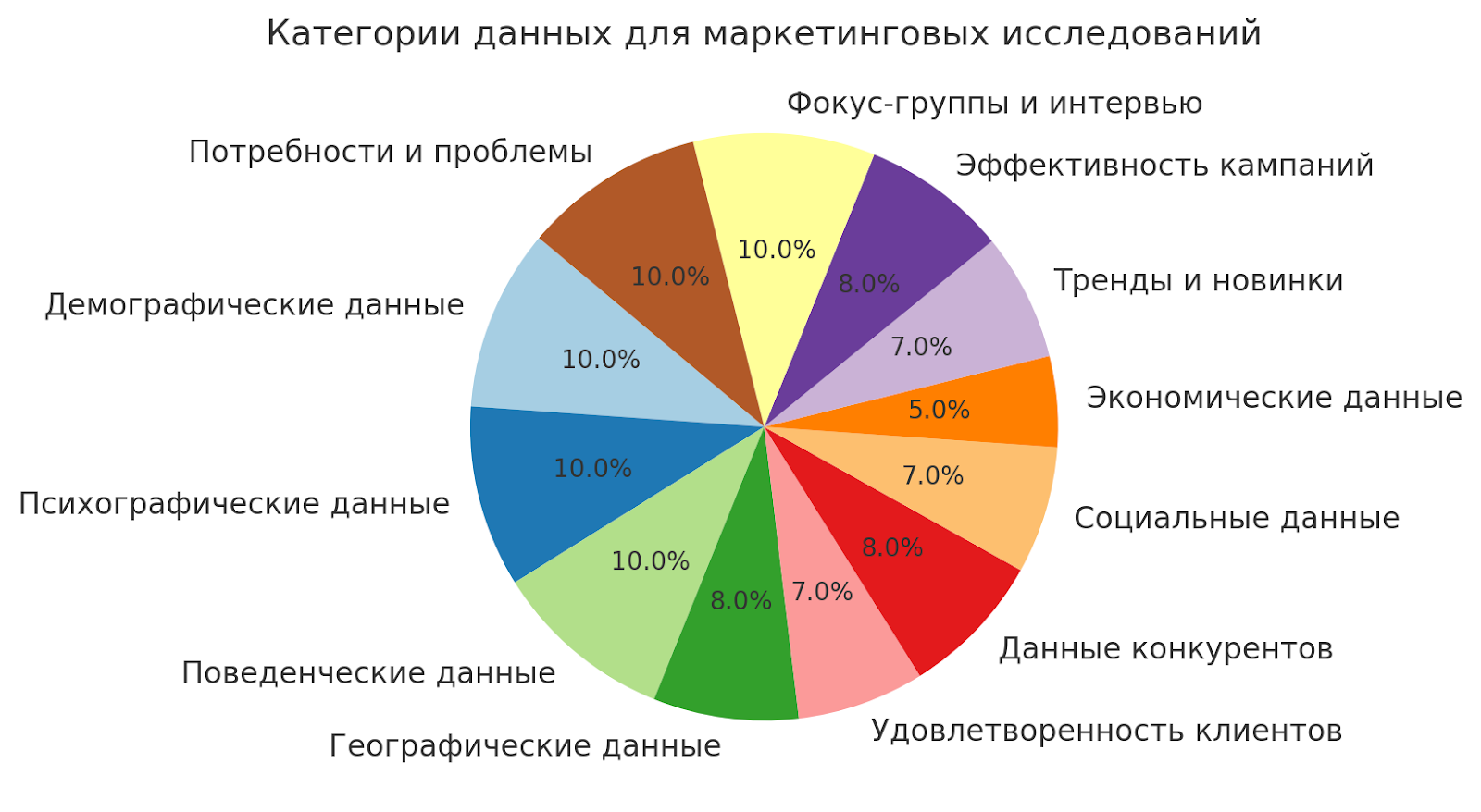 Для проведения маркетинговых исследований собираются различные типы данных, которые помогают глубже понять потребности, поведение и предпочтения целевой аудитории. Вот основные категории данных, которые могут быть полезны для исследований: